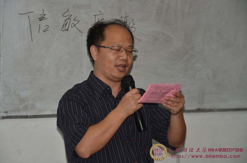在一年多的時間里,我們從戰(zhàn)略課程開始,共同領(lǐng)略了來自名家大師的精彩教學(xué),通過組織行為學(xué)、人力資源管理、市場營銷、稅務(wù)籌劃、領(lǐng)導(dǎo)藝術(shù)、管理經(jīng)濟學(xué)到今天才剛剛結(jié)束的財務(wù)管理等課程的學(xué)習(xí),我們收獲了治理企業(yè)發(fā)展的系統(tǒng)思維和系統(tǒng)能力,我們學(xué)會了分析與思考,學(xué)會了豐富與凝練,學(xué)會了合作與競爭,學(xué)會了繼承與創(chuàng)新,也進(jìn)一步學(xué)會了如何不斷超越、突破自己的極限而成長。在此,我有個提議,我親愛的同學(xué)們請起立,讓我們用最熱烈的掌聲送給曾經(jīng)給我們授過課的孫中一、孫丁、楊臺仙、喻景忠、王慧奇、李萍、謝獲寶等老師們!