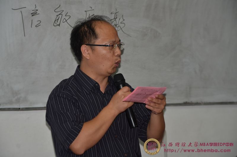 我是張家盛,今天,我站在這里,代表江西財經(jīng)大學(xué)EMBA總裁研修班21班(即贛州三班)的全體同學(xué)向我們的母校道別,向江財EDP中心的師長道別,向一年多來相濡以沫的同學(xué)精英們道別,也向這段不能忘懷的歲月道別!