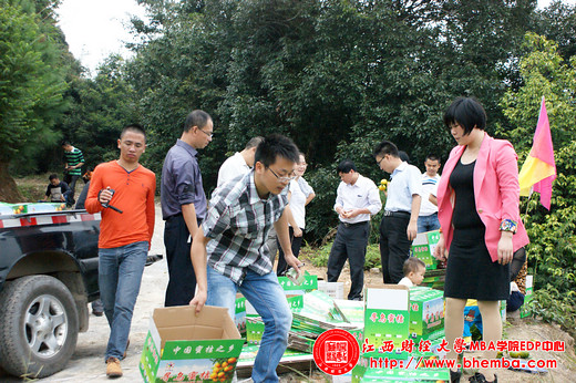 29日上午,又有五六名同學(xué)從贛州或者龍南驅(qū)車(chē)200多公里趕到尋烏與同學(xué)們會(huì)合。9時(shí)許,只見(jiàn)近10輛車(chē)門(mén)兩側(cè)貼有“群鑫廣告公司貴賓車(chē)隊(duì)”標(biāo)識(shí)小轎車(chē)組成的車(chē)隊(duì)行駛在尋烏縣城,贛州總裁學(xué)員一行先后參觀了劉蘭昕同學(xué)的企業(yè)歐尚創(chuàng)意大廈和群鑫廣告策劃有限公司。在歐尚創(chuàng)意大廈,大家參觀了其旗下鎰鑫亮化裝飾有限公司、聯(lián)創(chuàng)建筑裝飾有限公司、金鉆文化傳媒有限公司和印象客家演出有限公司,了解了企業(yè)目前的發(fā)展?fàn)顩r;在會(huì)議室,同學(xué)們還特意觀看了09年10月份大家齊聚尋烏摘蜜桔時(shí)的視頻和照片,四年前的場(chǎng)景彷佛就在眼前,大家在為早年同學(xué)在一起開(kāi)展活動(dòng)時(shí)的輕松、自在無(wú)不樂(lè)開(kāi)懷,也感概時(shí)光匆匆、一晃四年時(shí)間就這么過(guò)去了。在群鑫廣告策劃有限公司,總裁一班學(xué)員們還特意圍在照片墻上,細(xì)細(xì)回味著當(dāng)年的尋烏快樂(lè)時(shí)光。隨后,大家驅(qū)車(chē)近40分鐘,并步行20余分鐘前往東江源國(guó)家森林公園山頂上的果園,自己拿著剪刀和果筐,充當(dāng)起果農(nóng)摘蜜桔。1個(gè)多小時(shí)后,只見(jiàn)隨同學(xué)員們一起上山的皮卡車(chē)上裝滿了蜜桔,這就是大家上午的戰(zhàn)果,雖然很辛苦,但看到自己親手采摘的甜甜的蜜桔,大家便覺(jué)得一切都已經(jīng)是浮云了。來(lái)到特色農(nóng)莊,同學(xué)們還饒有興趣的打起了糍粑,體驗(yàn)炭火燒烤,盡情享受鄉(xiāng)村式的生活。大家圍坐在一起暢聊工作或生活中的點(diǎn)點(diǎn)滴滴,回味著在校學(xué)習(xí)時(shí)的趣事,輕松的氛圍就像老友般交談一樣。
