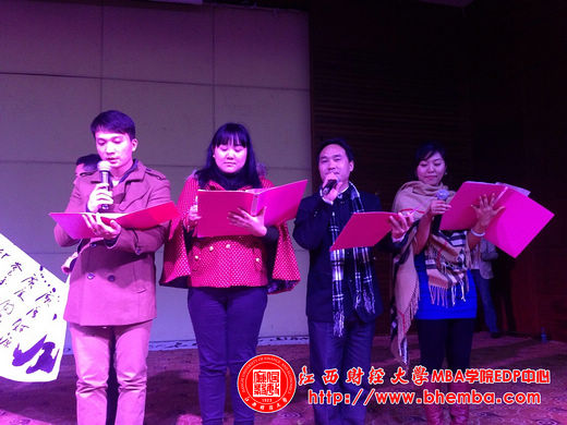 【導(dǎo)語】:2013年12月14日,在班主任王霑老師的精心指導(dǎo)下,在班委和宜春片區(qū)柳發(fā)庚、曾羽軍、吳龍等同學(xué)的辛勤、周密籌劃安排下,江西財大MBA學(xué)院總裁34班同學(xué)們歡聚明月山、嫦娥奔月美麗傳說的故鄉(xiāng),召開畢業(yè)后首期年會。在年會聯(lián)歡晚會上,齊彬、袁陽珍、陳雪慧、胡鋼四位同學(xué)激情飛揚(yáng)地朗誦了由齊彬同學(xué)撰寫的這首詩歌,現(xiàn)予刊載,以饗讀者。