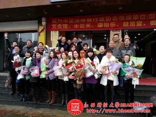 另:3月8日上午,江西財(cái)經(jīng)大學(xué)EMBA贛州總裁十班近二十名男同學(xué)代表全班男生在贛州于都路圍屋養(yǎng)生館向班主任李華榮老師及班級11位女同學(xué)送上了飽含同學(xué)情誼的鮮花和娃娃,以表達(dá)對班級12朵金花們麗人節(jié)深深的祝?!灰娒渴r花里還夾帶這一張精美的賀卡,上面寫著“美麗可愛的xxx同學(xué),祝你節(jié)日快樂、青春永駐、幸福安康 財(cái)大十班全體男生”。收到鮮花的女同學(xué)們都滿帶笑容,紛紛表示這是過得最有意義的一次三八麗人節(jié)…中午,大家還歡聚一堂,為班上的金花們慶祝~整場活動氣氛熱烈,溫情不斷~感謝十班全體男同學(xué)的精心策劃和辛勤付出,感謝女同學(xué)的全力支持與熱心參與!衷心祝愿十班的十二朵金花們幸??鞓访恳惶臁T甘嗟牧呶粠浶』锸聵I(yè)蒸蒸日上,再創(chuàng)輝煌!祝最可愛的你們馬年大吉!(江西財(cái)大EMBA贛州教學(xué)點(diǎn) 鄒龍江)
