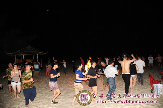 9月9日上午,學(xué)員們游覽廣東最美最天然的海灘,有“南方北戴河”之稱的巽寮灣旅游度假區(qū),并乘坐輪船前往面積只有1平方公里的中國私人島嶼———三角洲島游玩。一登上三角洲島,大家就被島上湛藍(lán)的海景所深深陶醉,總裁學(xué)員們紛紛體驗深海潛水,沙灘排球和淺海游泳,更有幾位學(xué)員饒有興致的在海灘上撿起了貝殼……在島上就餐后,考慮到這幾天的行程安排,大家便乘車來到巽寮灣,入住金色沙灘豪華海景房,盡情享受巽寮灣的秀麗風(fēng)光。片刻休息后,學(xué)員們又游覽了惠州海濱溫泉旅游區(qū),盡享全新、情趣妙生的海洋溫泉天地。晚上七點(diǎn),總裁學(xué)員們圍坐在海邊沙灘開始燒烤餐,烤制自己喜愛的食物。與此同時,贛州總裁七班惠州巽寮灣篝火晚會也一同舉行。大家就著燒烤,喝著啤酒,對酒當(dāng)歌,感嘆人生幾何。激情四射的《動起來》,鏗鏘有力的《軍中綠花》,柔情無限的《大?!凤@現(xiàn)出總裁學(xué)員的多才多藝,一首《朋友》更是能將總裁學(xué)員間的感情表達(dá)的淋漓盡致……大家還圍著篝火,就著動感的音樂,手拉著手跳起舞來,學(xué)員內(nèi)心的喜悅已經(jīng)通過他們各種風(fēng)格的舞蹈表現(xiàn)出來。總裁學(xué)員們的歡樂也傳遞給了身邊的很多朋友,一批批前來巽寮灣度假的游客們紛紛駐足觀看,一群來自東莞的朋友也一同加入到篝火晚會中,并傾情獻(xiàn)上了歌曲表演,并表示很羨慕這樣一個集體。篝火晚會中,總裁學(xué)員們忘記身份,忘記性別,忘記年齡,在沙灘上還玩起了童年才會玩的挖坑埋人游戲,這群包含60、70、80后的總裁學(xué)員紛紛重溫了童年時的樂趣。