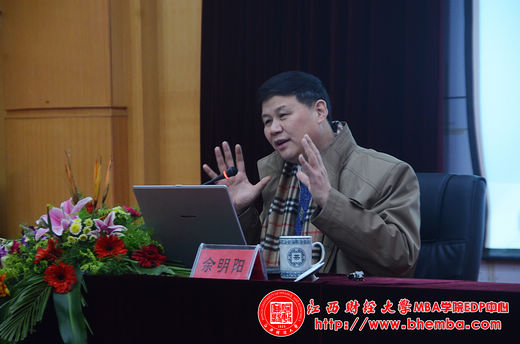 隆冬晴日,2013年12月29號(hào),江西財(cái)大MBA學(xué)院第六十屆高管論壇在蛟橋園校區(qū)內(nèi)隆重舉行。本次論壇主題是《積極應(yīng)對(duì),穩(wěn)中求變 》,邀請(qǐng)到了素有“中國(guó)品牌博士第一人”和“中國(guó)公關(guān)少帥”之稱的上海交通大學(xué)教授博士﹑ 博士生導(dǎo)師﹑安泰經(jīng)濟(jì)與管理學(xué)院黨委書記;中國(guó)企業(yè)發(fā)展研究院院長(zhǎng)同時(shí)擔(dān)任多所知名大學(xué)客座教授、多家地方政府與企業(yè)的經(jīng)濟(jì)顧問(wèn)余眀陽(yáng)教授,為我們的企業(yè)家來(lái)解讀十八屆三中全會(huì)后中國(guó)企業(yè)發(fā)展新機(jī)遇。