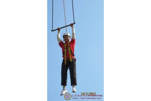 雖然身上掛滿了安全保護(hù)措施,但在高空跳躍,每個(gè)人都產(chǎn)生了或多或少的恐懼感, 從桿上站到頂端的圓盤是一次極大的考驗(yàn),從圓盤躍起抓杠更是一次心理的挑戰(zhàn),特別是女同學(xué)。有的同伴從滿臉通紅到面色蒼白,有的戰(zhàn)戰(zhàn)兢兢不敢站立,有的站了許久不敢躍起。。。。。。