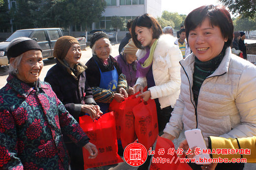 據(jù)悉,此次于都光明敬老院孤寡老人愛心捐獻(xiàn)活動(dòng)是我校EMBA贛州總裁八班繼2012年9月17日興國楊村小學(xué)貧困學(xué)子愛心捐獻(xiàn)和2013年1月7日贛縣特殊學(xué)校聾啞兒童愛心捐獻(xiàn)活動(dòng)后舉辦的第三次愛心捐獻(xiàn)活動(dòng),也是班級畢業(yè)后的首次愛心捐獻(xiàn)活動(dòng)。我校EMBA贛州總裁八班副班長、贛州市博達(dá)醫(yī)療器械有限公司總經(jīng)理涂靜和我校EMBA贛州總裁八班體育委員、“八班之家”聯(lián)絡(luò)人、貴州古鎮(zhèn)酒業(yè)江西分公司總經(jīng)理李世榮紛紛表示,尊老敬老、扶貧幫困是中華民族的傳統(tǒng)美德,多做慈善事業(yè)也是企業(yè)家感恩社會、履行社會責(zé)任的具體表現(xiàn),即便畢業(yè)了,班級將依舊一如既往的將這種慈善愛心活動(dòng)進(jìn)行下去,爭取每年至少捐獻(xiàn)一次愛心,將企業(yè)家的溫暖送給最需要關(guān)懷的人。(圖文/MBA學(xué)院EDP中心宣傳部 鄒龍江)