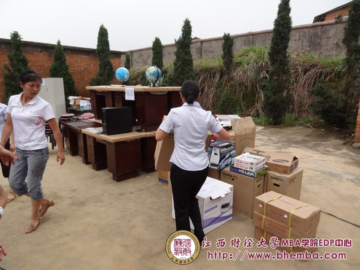 而這次王殿華又慷慨解囊,發(fā)起江西財經(jīng)大學EMBA總裁26班同學們攜手起來,對天源小學施以前所未有的巨額資助。王殿華本人捐助的物資數(shù)額具體是:三星電腦10臺,及網(wǎng)絡設備價值34385元;電腦桌10張價值3800元;鐵質(zhì)凳子20個,價值1000元;鐵皮文件櫥2張價值2600元;鐵皮包門、材料及工價2271元,還專門一對一資助了天源小學貧困生一戶人民幣1000元,這次捐贈物品總額45056元。而26班企業(yè)家同學聯(lián)手捐贈復印機一臺,價值2000元;復讀機6臺,價值2000元,乒乓球桌一張價值2500元;教育用具一條價值1000元;滅火器8個價值1000元;教室用吊扇10個,價值1800元;單雙杠一套3000元;防盜門2扇1920元,全班捐贈總額達15220元。