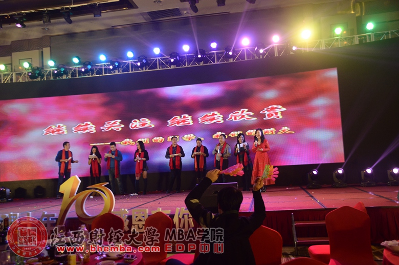 整個(gè)晚會(huì)現(xiàn)場(chǎng),師生相見(jiàn),同學(xué)聚首,有說(shuō)不完的話題;席間觥籌交錯(cuò),氣氛熱烈。同學(xué)們互相握手、交換名片彼此之間敞開(kāi)心扉,互表祝福。年會(huì)在激情、熱烈、活躍的氣氛中進(jìn)行著,我們共同見(jiàn)證和分享著年會(huì)溫馨而精彩的瞬間。