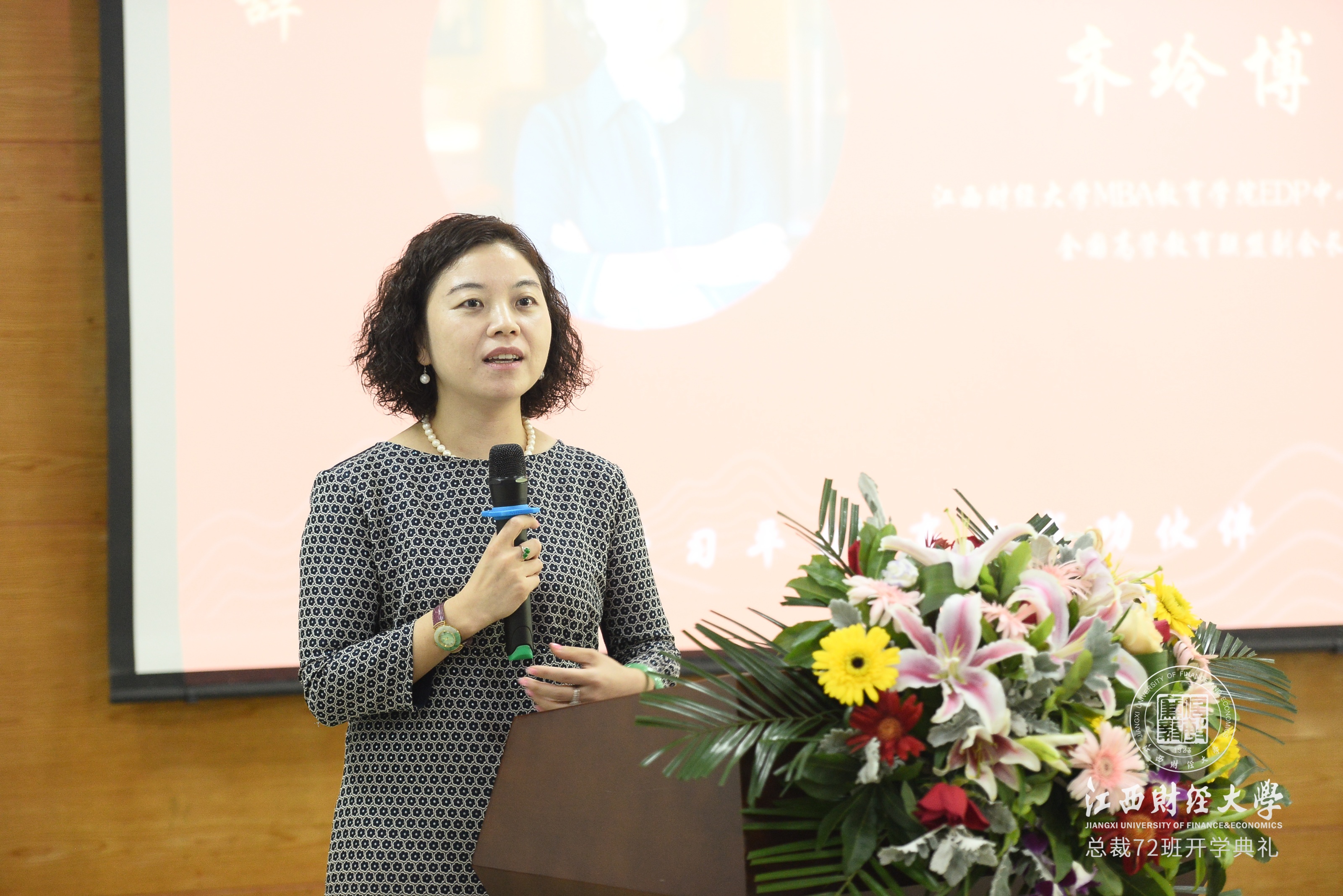 隨后,我院EDP中心創(chuàng)建主任齊玲博老師也送上對同學(xué)們的寄語,對在座同學(xué)們作為事業(yè)有成、衣食無憂、物質(zhì)上“該有的都有了”的優(yōu)秀企業(yè)家,能夠毅然選擇投身江財EMBA總裁班的學(xué)習(xí),把推進企業(yè)發(fā)展與實現(xiàn)個人進步相結(jié)合,予以高度肯定!
