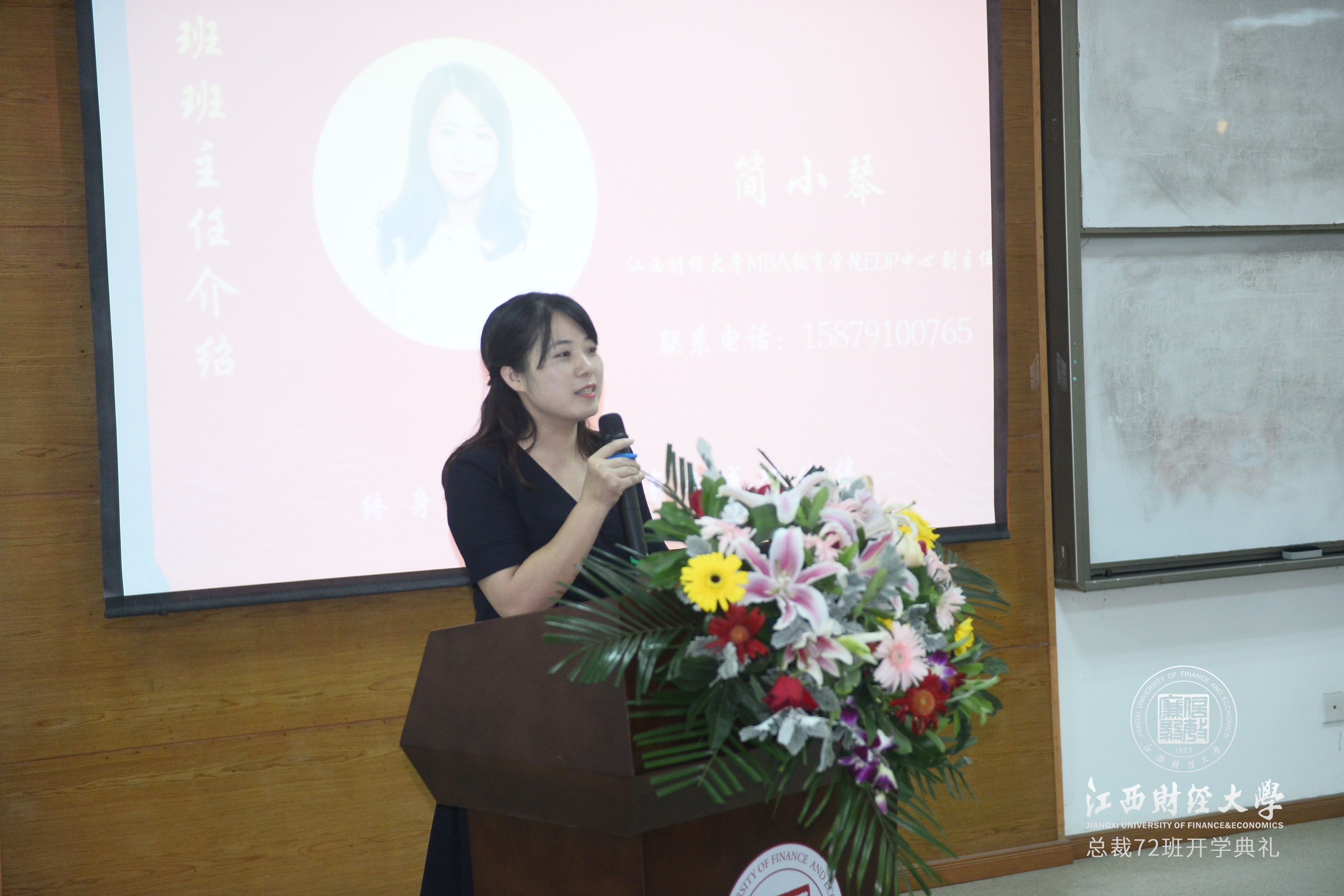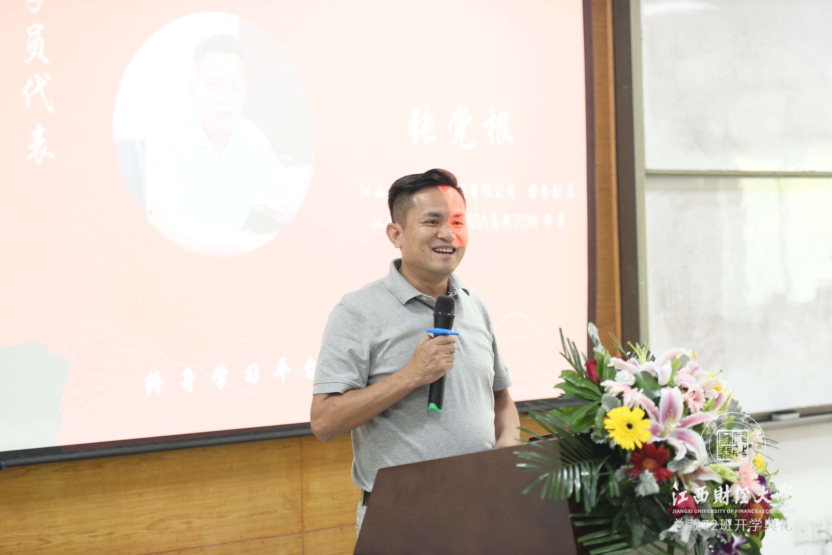 他向同學(xué)們簡單介紹了江西財經(jīng)大學(xué)及EMBA教育的辦學(xué)情況,同時也向72班的新同學(xué)們提出幾點希望和建議,希望同學(xué)們在學(xué)習(xí)過程中以志為先,立學(xué)先立志,非志無以成學(xué),樹立遠大志向是同學(xué)們作為當(dāng)代企業(yè)家應(yīng)當(dāng)弘揚的企業(yè)家精神之一;希望同學(xué)們在學(xué)習(xí)過程中學(xué)以致用,知行合一,把在總裁班的所學(xué)真正運用到工作中去;希望同學(xué)們在學(xué)習(xí)過程中持之以恒,事業(yè)發(fā)展沒有止境,學(xué)習(xí)就沒有止境,唯有不斷求索,才能積跬步以至千里。