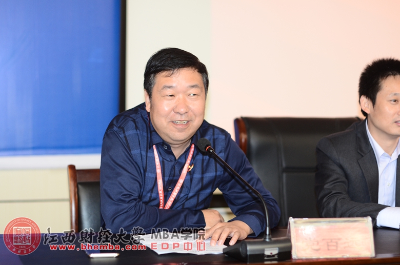 江西省杏林白馬藥業(yè)有限公司董事長、第六屆江西十大經(jīng)濟人物、總裁 1班學員黨百遠同學也在開幕式中發(fā)表講話,黨白遠同學作為最早加入總裁班的一批學員對EDP中心有著十分身后的感情,他在講話回憶了自己在財大的學習時光,并用自己的親身經(jīng)歷向?qū)W弟們提出建議,向各位老師及領(lǐng)導十年來的關(guān)懷表示感謝。