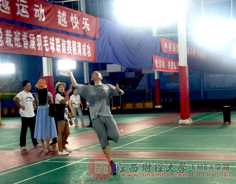 無論是在商海拼搏,還是在校園學(xué)習(xí),都離不開我們革命的本錢——健康! 2016年6月18日 江西財經(jīng)大學(xué)EMBA總裁班首屆“青春不老,羽你有約”羽毛球聯(lián)誼賽在南昌元康羽毛球館如期舉行。希望以此活動豐富同學(xué)們的文娛生活,緩解日常工作壓力,強健體魄,實現(xiàn)勞逸結(jié)合,養(yǎng)成健康生活方式,同時也為同學(xué)們興趣愛好找到一個家,搭建一個以球會友、展示自我、跨班互動的平臺。包括運動員,啦啦隊在內(nèi)的30余名同學(xué)一起積極參與了此次聯(lián)誼賽。江西財經(jīng)大學(xué)EMBA學(xué)院EDP中心主任漆飛女士也來到現(xiàn)場為同學(xué)們加油助威!