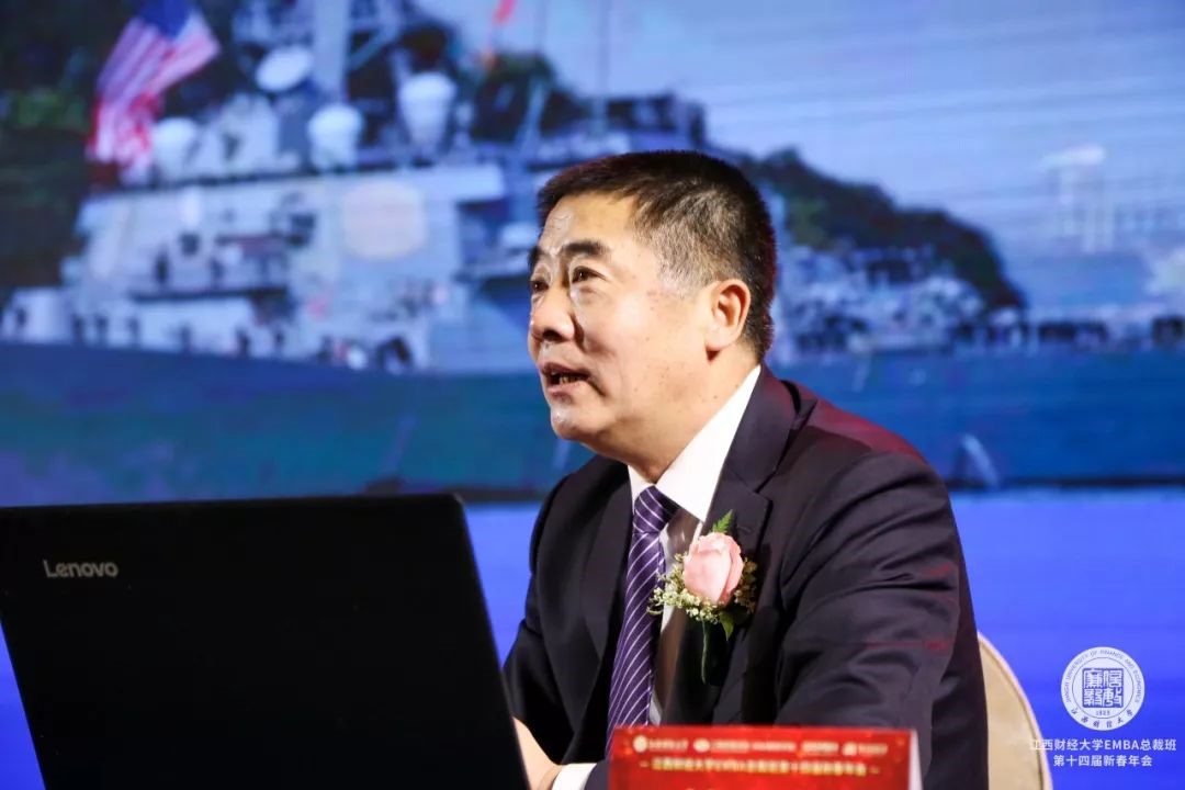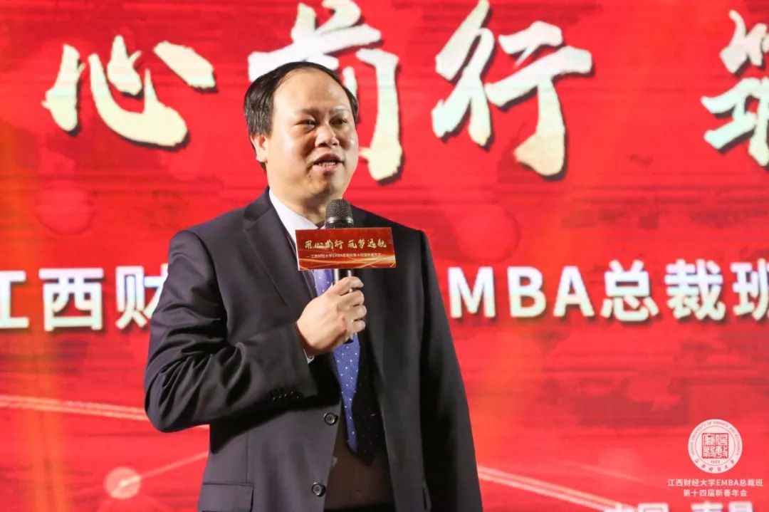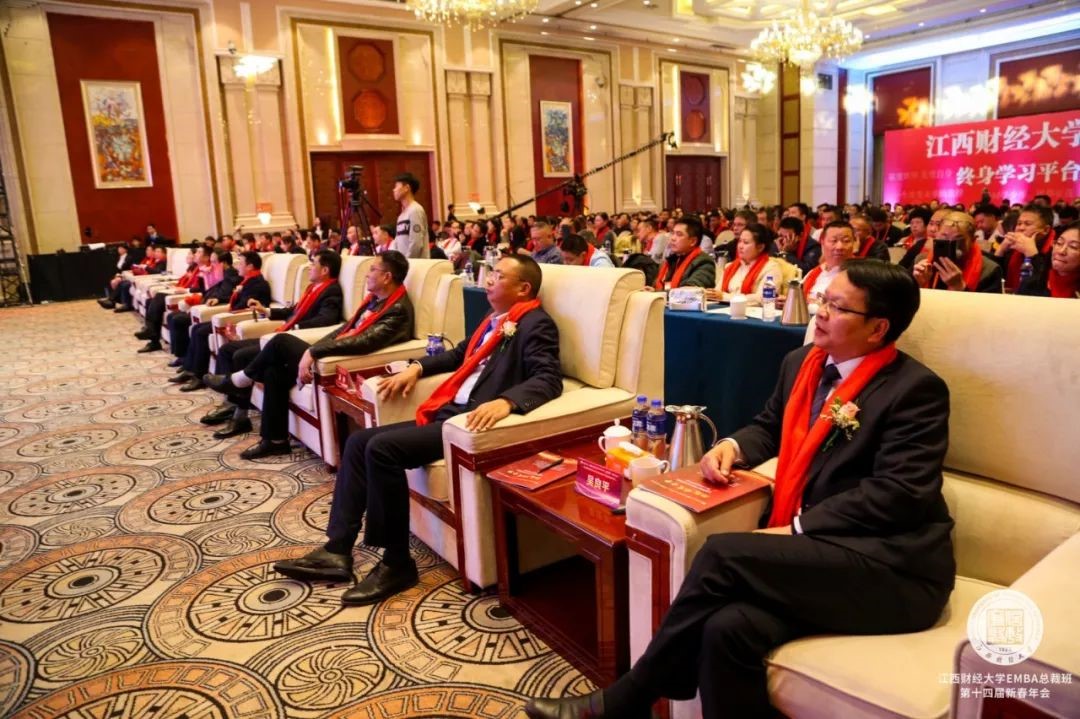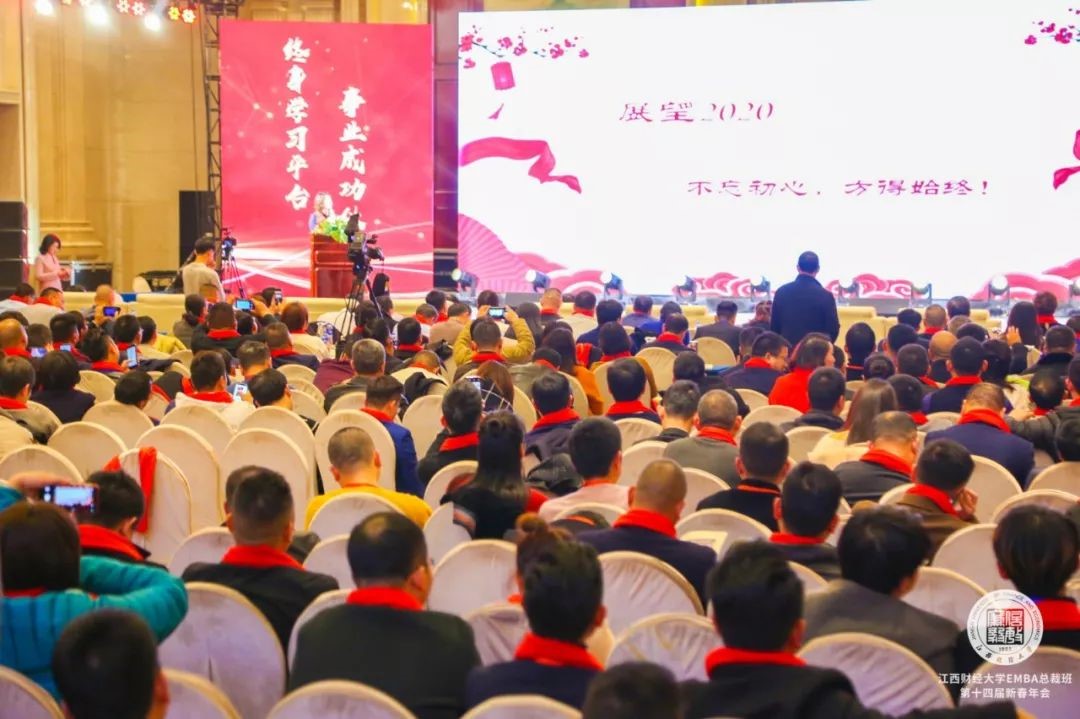 軍事專家、央視特約評論員杜文龍老師,何文,江西財(cái)經(jīng)大學(xué)黨委常委、副校長劉小麗,江西財(cái)經(jīng)大學(xué)校友聯(lián)絡(luò)辦公室主任潘樺,江西財(cái)經(jīng)大學(xué)旅游與城市管理學(xué)院院長鄒勇文,江西財(cái)經(jīng)大學(xué)工商管理學(xué)院院長胡海波,江西財(cái)經(jīng)大學(xué)工商管理學(xué)院黨委書記黃文德,MBA教育學(xué)院院長寧亮,MBA教育學(xué)院副院長吳良平,上海海事大學(xué)上海高級國際航運(yùn)學(xué)院副院長、江西財(cái)經(jīng)大學(xué)工商管理學(xué)院EDP中心總顧問趙海博老師,全國高管教育聯(lián)盟副會長、博海國濟(jì)教育集團(tuán)創(chuàng)始人、江西財(cái)經(jīng)大學(xué)工商管理學(xué)院EDP中心創(chuàng)建主任齊玲博,江西財(cái)經(jīng)大學(xué)工商管理學(xué)院EDP中心主任漆飛等領(lǐng)導(dǎo)嘉賓及包括重慶大學(xué)EDP中心、云南大學(xué)EDP中心等在內(nèi)的全國高校聯(lián)盟代表一起出席了本次年會。全省各行各業(yè)的企業(yè)精英以及江西財(cái)經(jīng)大學(xué)EMBA總裁班同學(xué)、校友等近千余人齊聚一堂,共襄盛會!此次大會不僅是對過去一年EMBA教育工作的總結(jié),同時也是學(xué)習(xí)中央經(jīng)濟(jì)工作會議精神,幫助企業(yè)家明晰2020年形勢,提振企業(yè)家信心的一次盛會。江西財(cái)經(jīng)大學(xué)校長盧福財(cái)教授亦通過視頻為年會送上了新春的祝福。