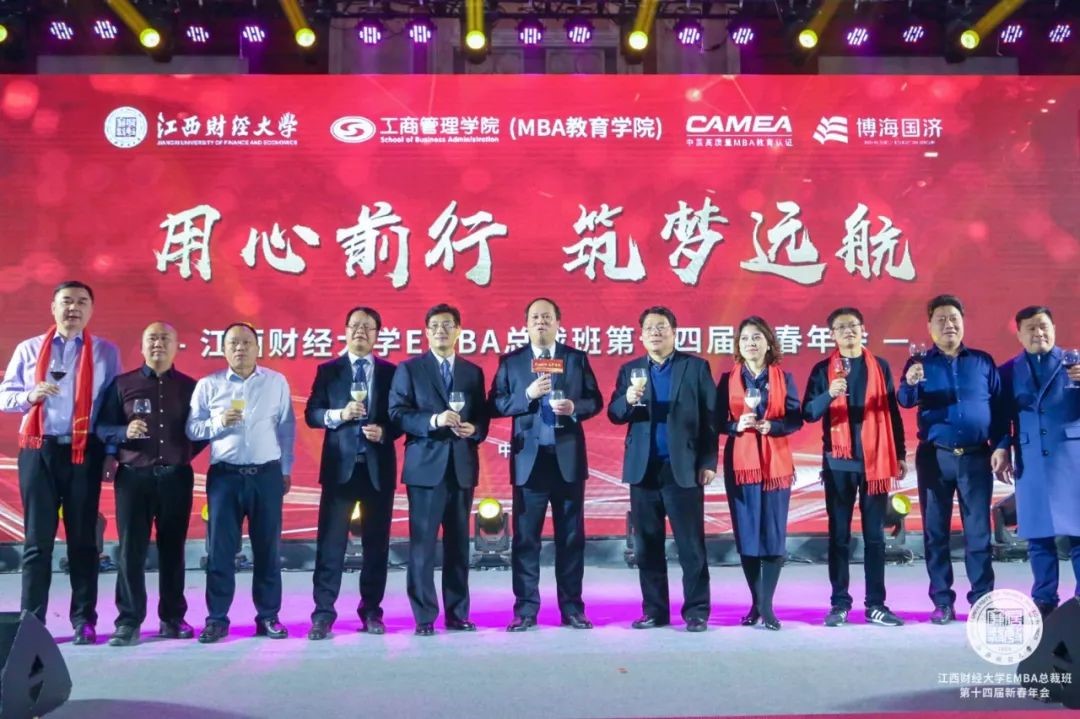 在大合影中,江西財(cái)經(jīng)大學(xué)EMBA總裁班第十四屆新春年會圓滿落下了帷幕!這是一場思想賀歲、智慧交鋒與情誼交融的新年盛會,年會雖然在大家的依依不舍中圓滿畫上了句號,但是同學(xué)們的記憶中又留下了一段令人難忘的時光,同學(xué)之間的情誼又一次得到了提升,也更加辨明了前行的方向,填補(bǔ)了信心!展望未來,任重道遠(yuǎn),我們始終懷著春風(fēng)化雨、降作甘霖的美好心愿,陪伴大家共同進(jìn)步、共同成長,希望在未來的新時代、新氣象、新征程中,你我能攜手共行,為中國社會的美好未來,共同譜寫新的篇章!