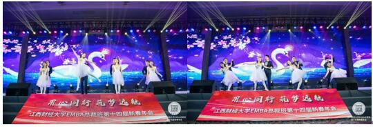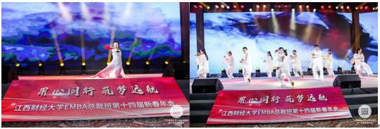 晚上,工商管理學(xué)院EDP中心的老師與各班級同學(xué)們準(zhǔn)備了形式豐富、精彩絕倫的表演,為參加年會的校友們演繹了一場別開生面的視聽盛宴——江西財(cái)經(jīng)大學(xué)EMBA總裁班新春聯(lián)歡晚會。