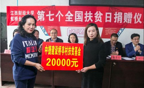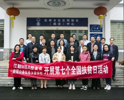10月16日,校黨委常委、副校長劉小麗率隊赴橋亭村開展第七個全國扶貧日活動暨MBA校友會第六次精準扶貧愛心之旅。校黨委常委、組織部部長徐翔,校工會主席黃澤友、旅游與城市管理學院院長鄒勇文、工商管理學院黨委書記黃文德、MBA教育學院院長寧亮,黨委組織部副部長、人事處副處長肖建文、工商管理學院EDP中心主任漆飛以及江西財大總裁3班學員、江西銀達集團董事長艾銀星等17名MBA校友和工作人員參加活動。虹橋鄉(xiāng)黨委書記葉建國、鄉(xiāng)長余躍進,虹橋鄉(xiāng)黨委副書記邱李瑋出席活動。
