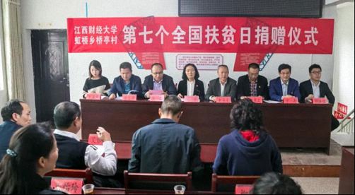 江西財經(jīng)大學—橋亭村第七個全國扶貧日暨MBA校友會第六次精準扶貧愛心之旅捐贈活動在橋亭村黨員活動室舉行,校黨委常委、組織部部長徐翔主持儀式。