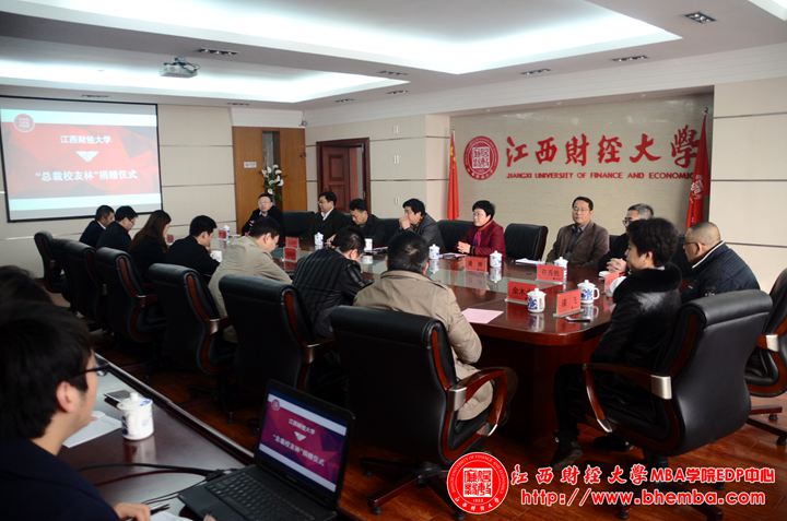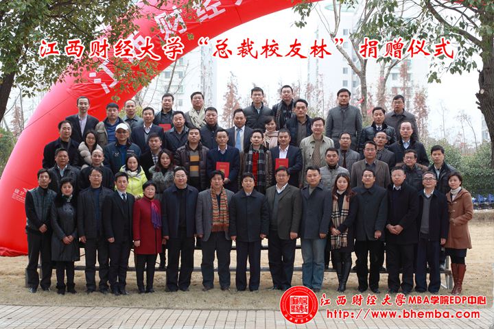 1月7日上午,江西財經大學“總裁校友林”捐贈儀式隆重舉行。校長王喬、副校長王小平,省工商局副局長、著名校友劉建華等領導出席并為“總裁校友林”揭牌,黨辦校辦、宣傳部、MBA學院、校友辦、后勤保障處等部門負責人及來自總裁班14、19、22、36、41、43、45、46、47班的學員代表一起參加了活動。捐贈儀式由后勤保障處處長彭元主持。