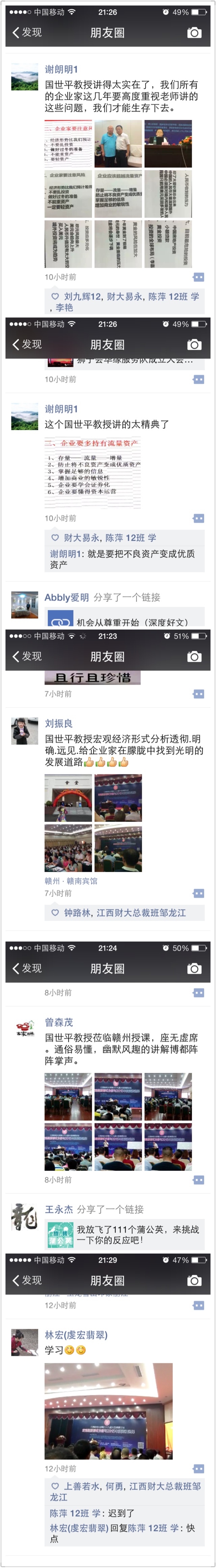 ??學(xué)員們紛紛表示,此次國世平教授的論壇讓他們受益匪淺,更加明晰了當(dāng)前的宏觀經(jīng)濟(jì)形勢及未來的投資方向,今后有機(jī)會將會再次前來聆聽國教授的真知灼見。江西財經(jīng)大學(xué)MBA學(xué)院EDP中心已經(jīng)有開設(shè)了52期總裁研修班,現(xiàn)目前MBA學(xué)院總裁53班也即將在7月份開課,這將為更多的企業(yè)管理者提供一個學(xué)習(xí)交流的機(jī)會,也期待更多的優(yōu)秀企業(yè)家們加入我們這個大家庭!