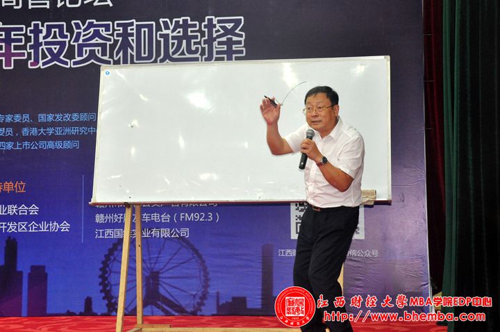 ??論壇中,著名經(jīng)濟(jì)學(xué)家、國家發(fā)改委顧問、深圳大學(xué)國際金融研究所所長國世平教授結(jié)合當(dāng)前經(jīng)濟(jì)形勢和十八大以來黨中央所做的重要戰(zhàn)略部署,為大家分享解讀2015年投資與選擇,幫助企業(yè)家打開思維格局,及時做好企業(yè)風(fēng)險風(fēng)范及應(yīng)對,規(guī)避投資風(fēng)險、獲悉2015年相對保守的投資選擇并學(xué)會多元化投資,使企業(yè)在激烈的市場競爭中更具強(qiáng)大生命力。在為期一天的論壇中,國教授用幽默風(fēng)趣的語言和豐富的實戰(zhàn)案例表達(dá)了自己的獨到見解,贏得臺下的一致認(rèn)可和陣陣掌聲,論壇休息期間嘉賓和同學(xué)們都紛紛表示受益匪淺!國教授提出,投資最重要的兩個方向就是房地產(chǎn)和股票,目前中國的房地產(chǎn)已到了投資高位,建議大家賣出,而中國股市相對仍處低位,建議大家買入,等到股市高位時賣出,再抄房地產(chǎn)的底。同時也指出投資是有風(fēng)險的,不會逃頂是很多投資者將多年收獲毀于一旦的重要原因,因此大家要注意風(fēng)險的防控。此外,國老師還建議大家一定要輕資產(chǎn)、不能重資產(chǎn),黃金的風(fēng)險和人民幣的壓力仍在加大,企業(yè)應(yīng)該超越流量資產(chǎn),掌握足夠的信息增強(qiáng)商業(yè)的敏銳性。