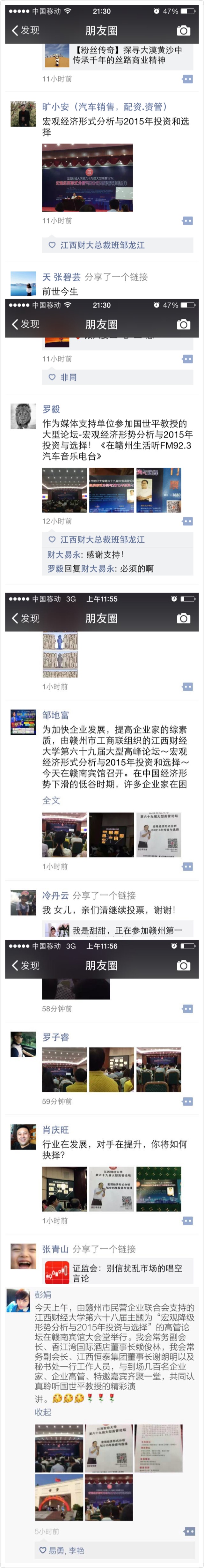 ??據(jù)悉,此次論壇還得到了章貢區(qū)工商聯(lián)、南康區(qū)工商聯(lián)、贛縣工商聯(lián)、上猶縣工商聯(lián)、于都縣工商聯(lián)、贛州市江西財經(jīng)大學(xué)EMBA同學(xué)聯(lián)誼會、贛州市民營企業(yè)聯(lián)合會、贛州經(jīng)濟(jì)技術(shù)開發(fā)區(qū)企業(yè)協(xié)會及贛州市時代公交廣告有限公司、江西國維實業(yè)有限公司、贛州好朋友車電臺(FM92.3)等學(xué)員企業(yè)的大力支持,在此表示衷心感謝。(圖、文/江西財經(jīng)大學(xué)EMBA贛州教學(xué)點 鄒龍江)
