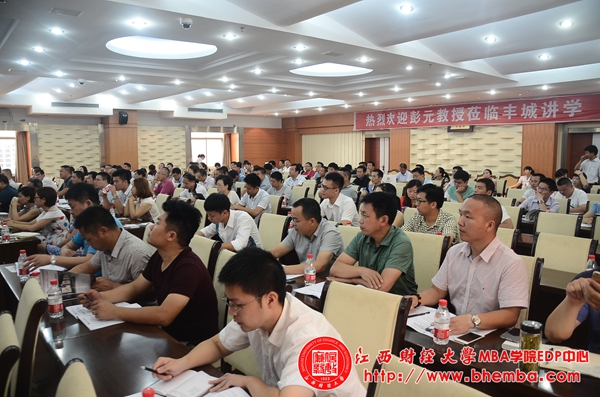 2015年6月24日,由江西財經(jīng)大學(xué)和豐城市工商聯(lián)聯(lián)合主辦,江西財經(jīng)大學(xué)MBA學(xué)院、江西財經(jīng)大學(xué)MBA學(xué)院EDP中心、江西豐城高新技術(shù)開發(fā)園區(qū)管理委員會共同承辦的江西財經(jīng)大學(xué)第六十八屆高管論壇在豐城市政務(wù)服務(wù)中心如期舉行。本次論壇以領(lǐng)導(dǎo)科學(xué)與管理藝術(shù)為主題,我們也非常榮幸的請到原江西財經(jīng)大學(xué)MBA學(xué)院副院長、經(jīng)濟學(xué)博士、西安交通大學(xué)EMBA總裁班、重慶大學(xué)EMBA總裁班特聘教授彭元主講。豐城市工商聯(lián)主席甘宇紅、豐城市委統(tǒng)戰(zhàn)部副部長、工商聯(lián)黨組書記丁愛平、江西財經(jīng)大學(xué)MBA學(xué)院EDP中心主任漆飛及江西財經(jīng)大學(xué)EMBA總裁班的學(xué)員們共同出席了本次論壇。